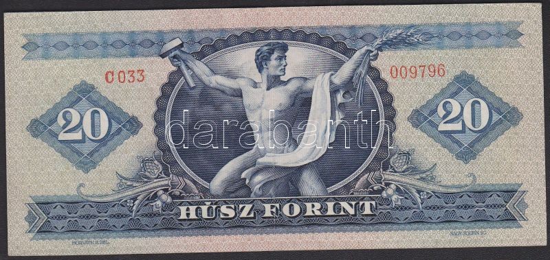 1957. 20Ft T:I egyszer hajtva de törve nem! https://www.darabanth.com/hu/128-Gyorsarveres/128.0/Numizmatika/OsztrakMagyar-bankjegyek-Hungarian-Austro-Hungarian-banknotes~300207/1957-20Ft-TI-egyszer-hajtva-de-torve-nem~II359165