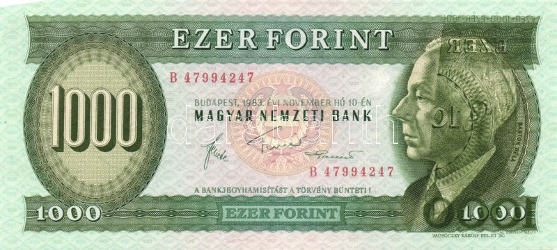 1983. 1000Ft tévnyomat! T:I R! https://www.darabanth.com/hu/128-Gyorsarveres/128.0/Numizmatika/OsztrakMagyar-bankjegyek-Hungarian-Austro-Hungarian-banknotes~300207/1983-1000Ft-tevnyomat-TI-R~II360350