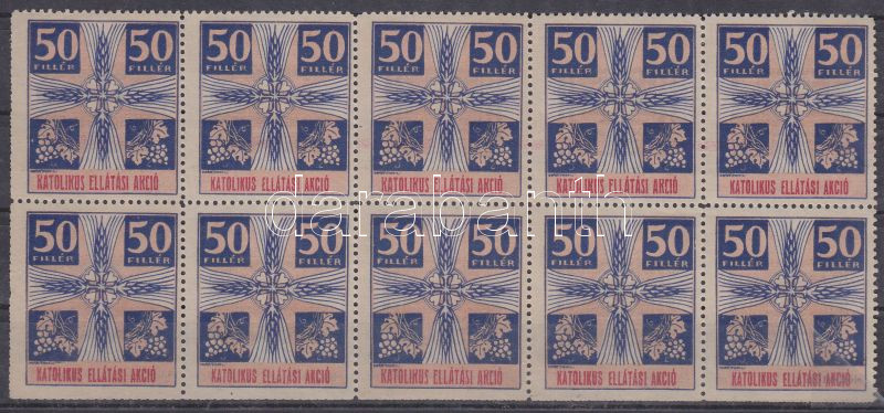 Leírás: Katolikus ellátási akció 50f segélybélyeg tízes tömb