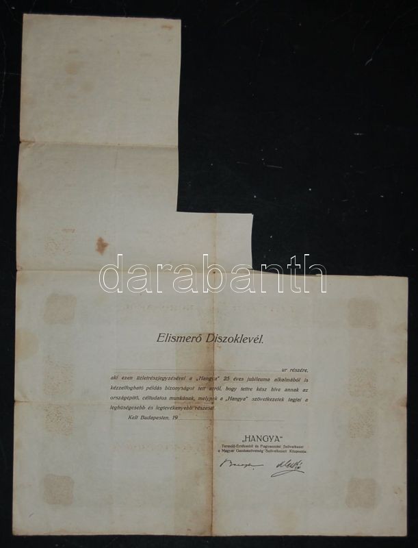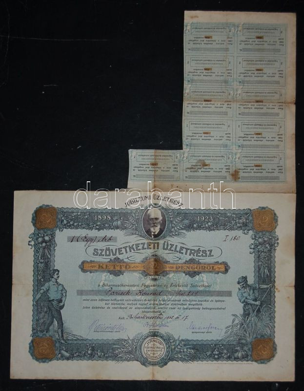 1923 "Hangya Termelő-Értékesítő és Fogyasztási Szövetkezet" jubileumi ... https://www.darabanth.com/hu/132-Gyorsarveres/132.0/Numizmatika/Reszvenyek-es-ertekpapirok-Shares-and-bonds~900193/1923-Hangya-Termelo-Ertekesito-es-Fogyasztasi-Szovetkezet-jubileumi-uzletreszjegy-2P-ro~II378350