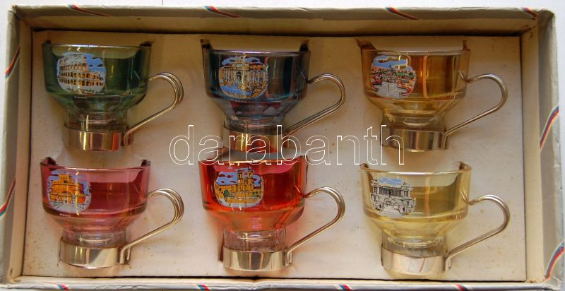 Leírás: Olasz kávés pohár készlet, 6 db pohár, római városképekkel, eredeti dobozban az 1960-as évekből, kiváló vándorajándék
