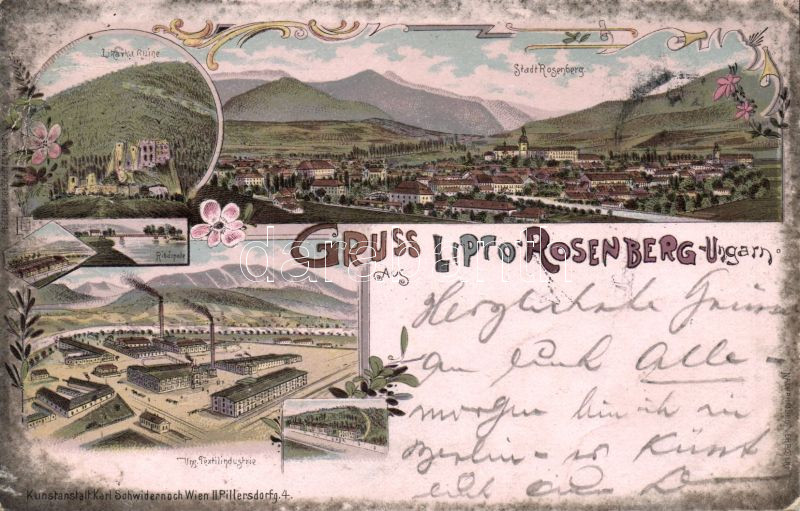 Rózsahegy with textile factory litho (Rb) https://www.darabanth.com/hu/133-Gyorsarveres/133.0/Kepeslapok/Felvidek~400010/Rozsahegy-with-textile-factory-litho-Rb~II381234
