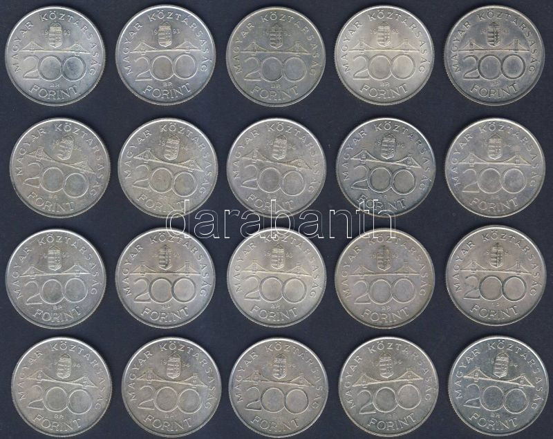 Leírás: 1993-94. 200Ft Ag "Deák" + "MNB" (20x) T:vegyes