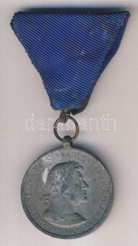 Leírás: 1940. "Erdélyi részek felszabadulásának emlékére" fém emlékérem szalaggal T:3