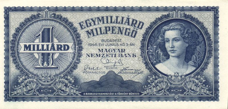 1946. 1000000000MP (2x) T:I https://www.darabanth.com/hu/133-Gyorsarveres/133.0/Numizmatika/Osztrak-magyar-Magyar-es-Magyar-vonatkozasu-Bankjegyek~400129/1946-1000000000MP-2x-TI~II381566