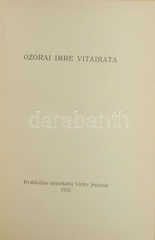 1961 Ozorai Imre Vitairata, Krakkó 1535, Bibliofil bőr kötésben, nagyo... https://www.darabanth.com/hu/134-Gyorsarveres/134.0/Festmeny-mutargy-papirregiseg-egyeb/Konyvek-egyeb-ritkasagok~199/1961-Ozorai-Imre-Vitairata-Krakko-1535-Bibliofil-bor-kotesben-nagyon-szep-allapotban~II386200