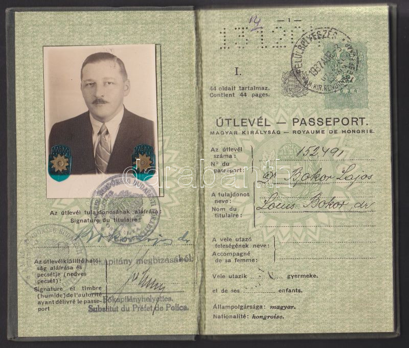 1938 Keményfedeles, fényképes magyar útlevél okmánybélyegekkel, vízumo... https://www.darabanth.com/hu/134-Gyorsarveres/134.0/Festmeny-mutargy-papirregiseg-egyeb/Okmanyok~183/1938-Kemenyfedeles-fenykepes-magyar-utlevel-okmanybelyegekkel-vizumokkal-szep-allapotba~II383079