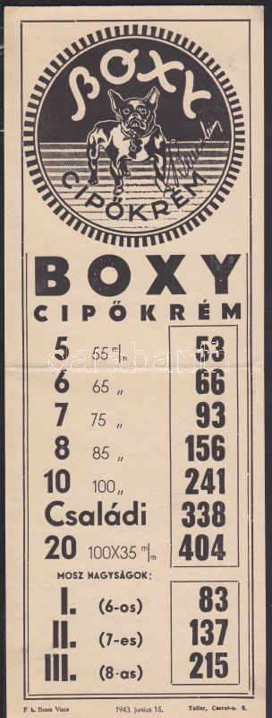 1943 Boxy Cipőkrém fali mérettáblázat https://www.darabanth.com/hu/134-Gyorsarveres/134.0/Festmeny-mutargy-papirregiseg-egyeb/Reklam~189/1943-Boxy-Cipokrem-fali-merettablazat~II385456