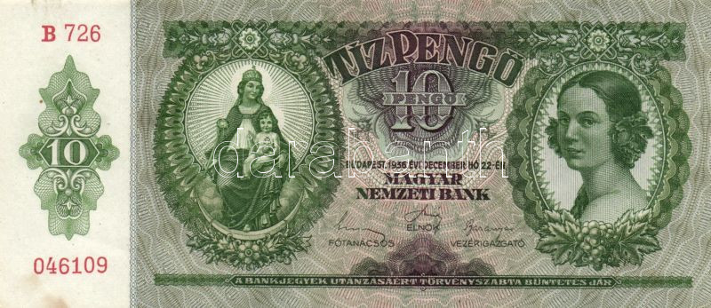 1936. 10P (2x) egymást követő sorszámmal T:I- (apró saroktörés) https://www.darabanth.com/hu/134-Gyorsarveres/134.0/Numizmatika/Magyar-bankjegyek~444532/1936-10P-2x-egymast-koveto-sorszammal-TI-apro-saroktores~II384110
