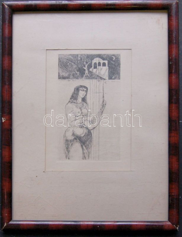 Leírás: Würtz Ádám: Akt, rézkarc, keretben 26x35 cm