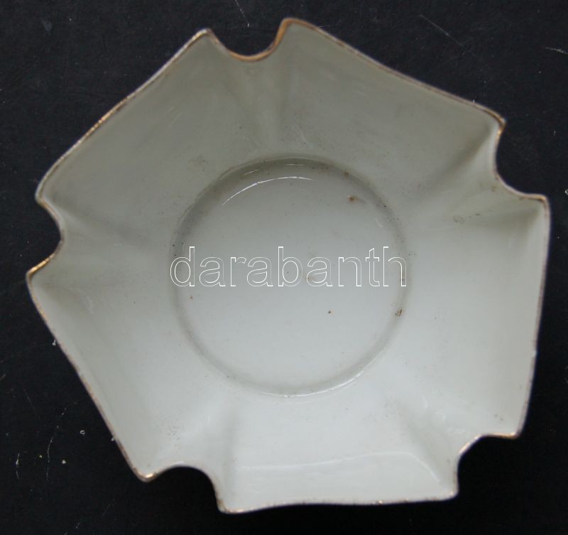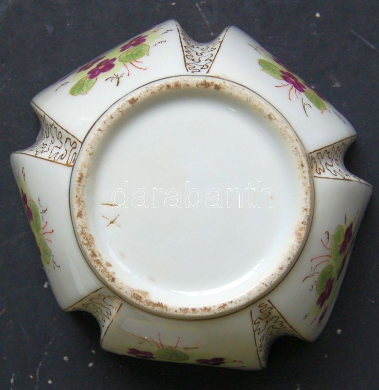Leírás: ~1860 Aranyozott és virág mintával díszített cseh porcelán tál / Czech chinaware tray 7x15x15 cm