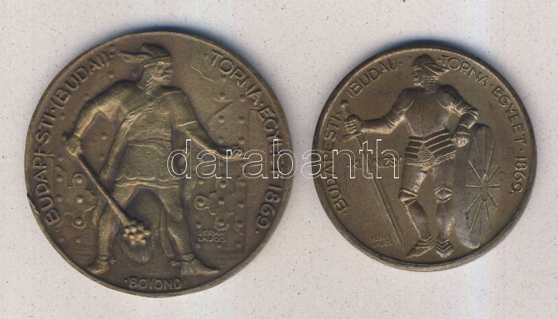 Leírás: 1869. "Budapesti (Budai) Torna Egylet" 2 klf (Botond éd Kinizsi) nagyságú és ábrázolású Br emlékérem. Szign:Berán T:2