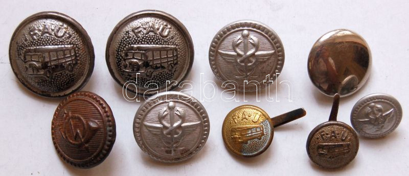 Leírás: 9db "FAÜ" és póstás egyenruha gomb