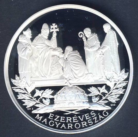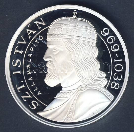 2000. "Szt. István 969-1038. - Államalapítás / Ezeréves Magyarország" ... https://www.darabanth.com/hu/135-Gyorsarveres/135.0/Numizmatika/Magyar-Nemesfem-Emlekveretek-Plakettek~400030/2000-Szt-Istvan-969-1038--Allamalapitas-Ezereves-Magyarorszag-Ag-emlekerem-311g-T~II386364