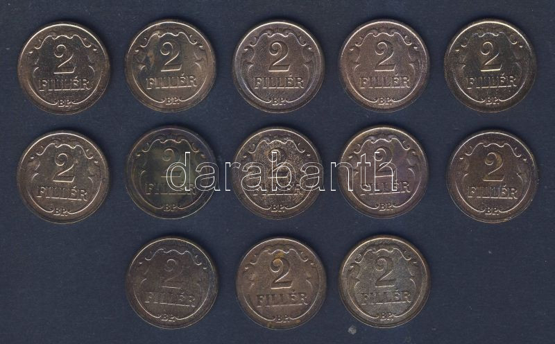1926-40(kivéve 1932,33). 2f Br (13x) T:1,2,2-,3 https://www.darabanth.com/hu/135-Gyorsarveres/135.0/Numizmatika/Magyar-es-Magyar-Verdejelu-Fem-es-Ezustpenzek~400035/1926-40kiveve-1932-33-2f-Br-13x-T1-2-2-3~II378771