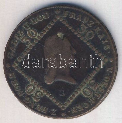 Ausztria/magyar verdejel 1807E. 30Kr T:3 ü. https://www.darabanth.com/hu/135-Gyorsarveres/135.0/Numizmatika/Magyar-es-Magyar-Verdejelu-Fem-es-Ezustpenzek~400035/Ausztriamagyar-verdejel-1807E-30Kr-T3-u~II389319