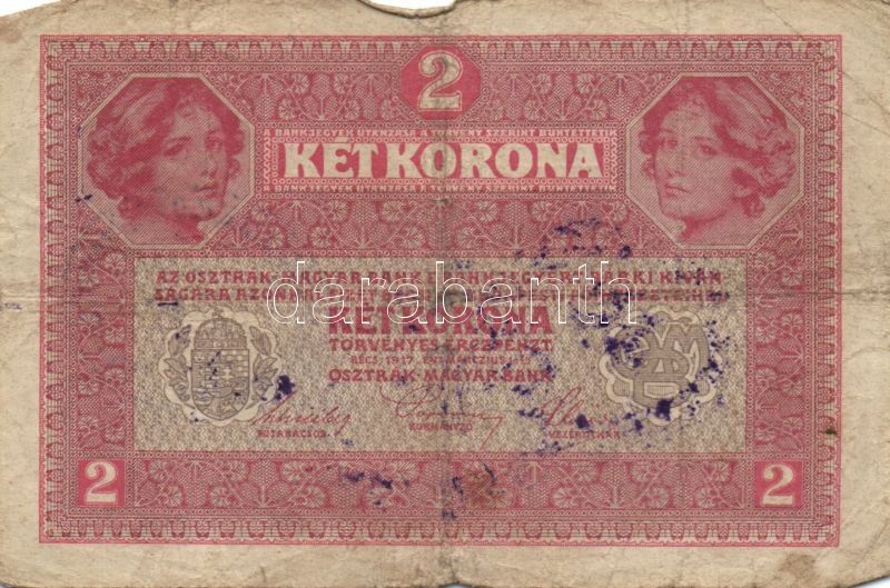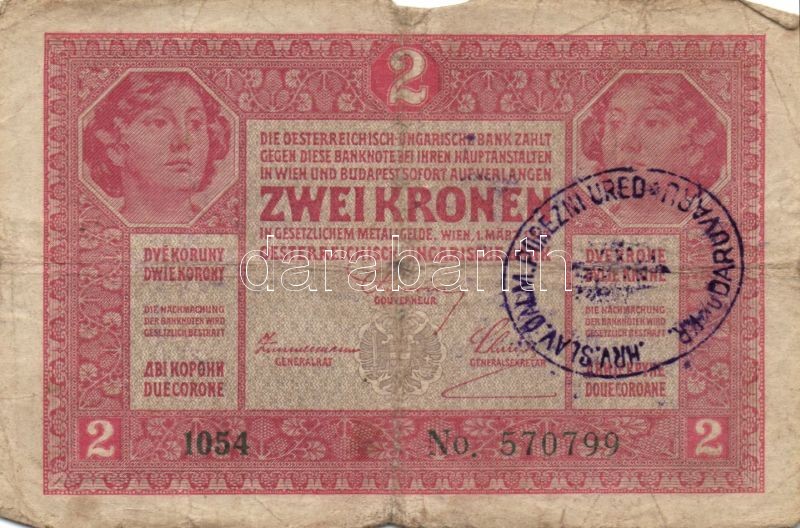 1917. 2K (3x) mindegyik ovális délszláv bélyegzővel T: III,IV https://www.darabanth.com/hu/135-Gyorsarveres/135.0/Numizmatika/Osztrak-magyar-Magyar-es-Magyar-vonatkozasu-Bankjegyek~400024/1917-2K-3x-mindegyik-ovalis-delszlav-belyegzovel-T-III-IV~II387949