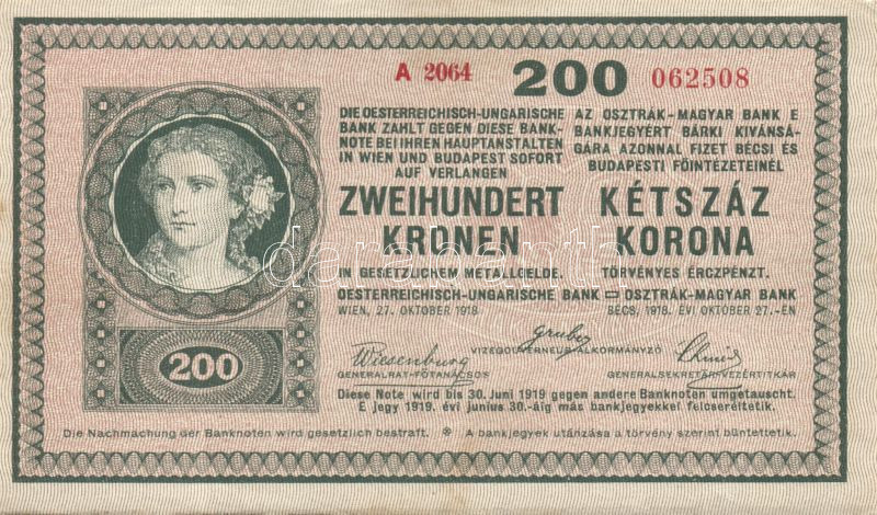 1918. 200K "A 2064" hullámos hátlappal T:II https://www.darabanth.com/hu/135-Gyorsarveres/135.0/Numizmatika/Osztrak-magyar-Magyar-es-Magyar-vonatkozasu-Bankjegyek~400024/1918-200K-A-2064-hullamos-hatlappal-TII~II358774