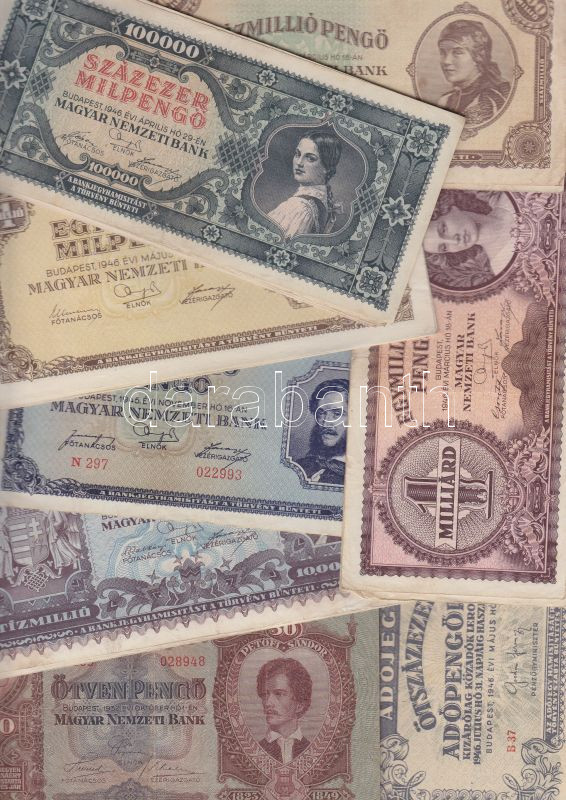 Leírás: 1932-1946. ~70db vegyes pengős, adópengős és millpengős bankjegy tétel több egyforma darabbal és jobb tartásfokúakkal! T:vegyes