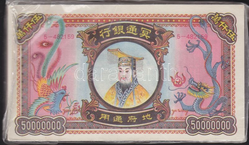 Bontatlan csomag kínai égetési pénz 100 db / China hell banknote 100x ... https://www.darabanth.com/hu/135-Gyorsarveres/135.0/Numizmatika/Papir-es-fem-szuksegpenzek~400022/Bontatlan-csomag-kinai-egetesi-penz-100-db-China-hell-banknote-100x-UNC~II374441