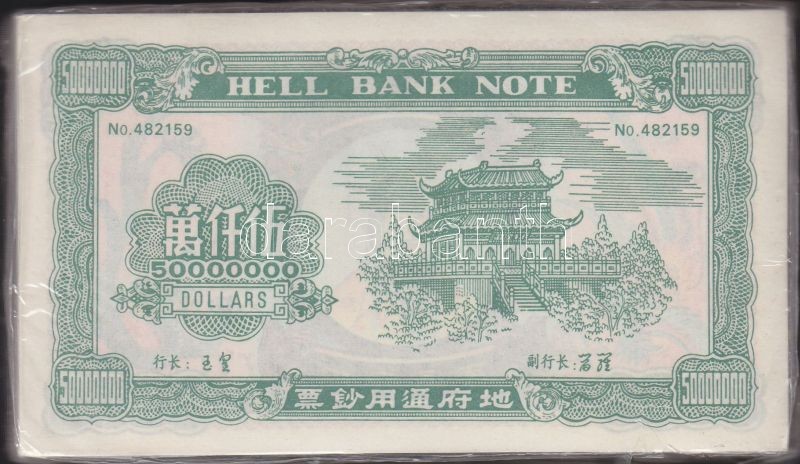 Leírás: Bontatlan csomag kínai égetési pénz 100 db / China hell banknote 100x UNC