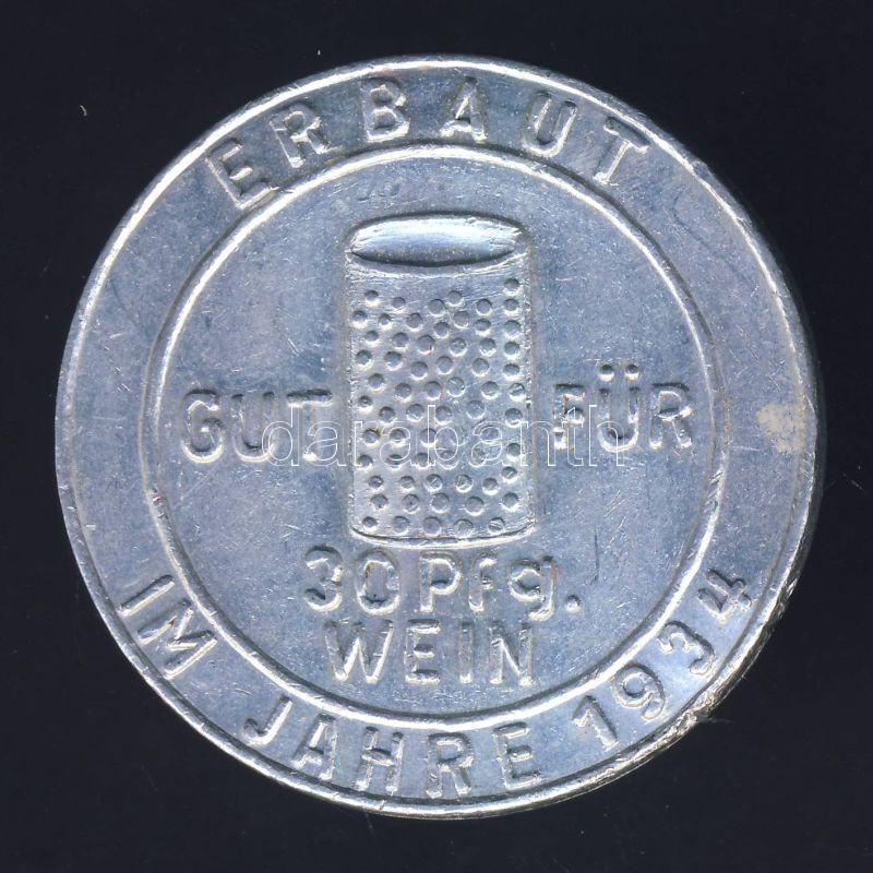 Leírás: Németország 1934. "Durkheimer Riesenfass" borfogyasztásra felhasználható zseton T:2