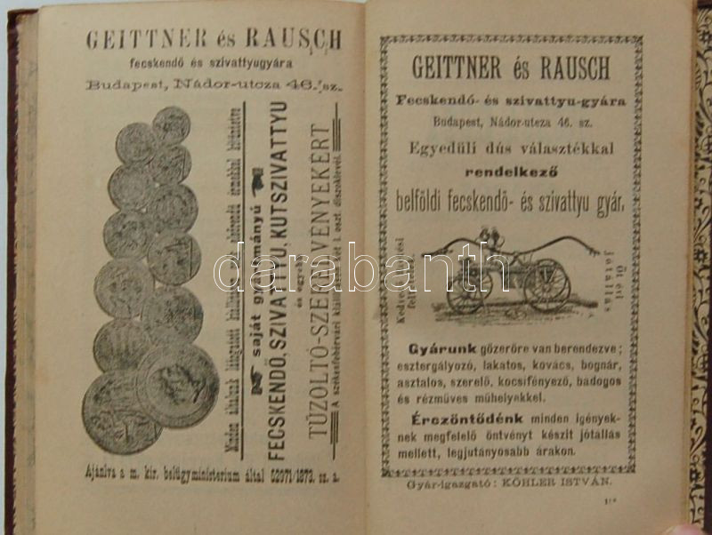 Tűzoltók zsebkönyve 1890. évre.Szerk. Breuer Szilárd, Köhler István, Kálmán Géza. Bp. 1889. Márkus Samu rengeteg ábrával és hirdetéssel. Dombornyomott egészvászon kötésben. Jó állapotban 280p.