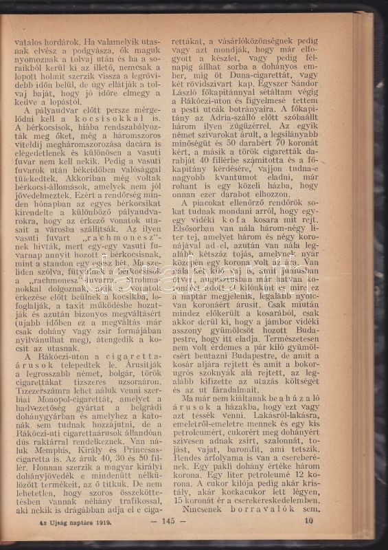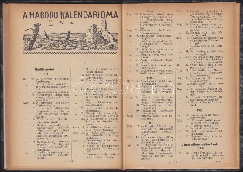 Leírás: 1919 Az újság naptára, benne a háborús évek kalendáriumával és számos érdekes írással, eseménytörténettel félvászon kötésben