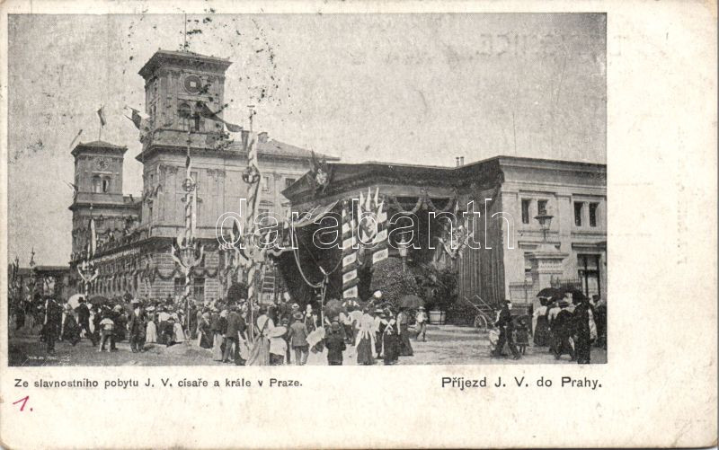Praha the arrival of Franz Joseph at the State railway station https://www.darabanth.com/hu/136-Gyorsarveres/136.0/Kepeslapok/Cseh-Koztarsasag~300030/Praha-the-arrival-of-Franz-Joseph-at-the-State-railway-station~II393724