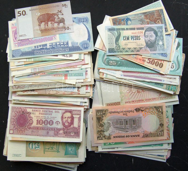 500 különböző hajtatlan bankjegy az egész világból, rengeteg országból, jobbakkal. Gyűjtőknek és viszonteladóknak egyaránt kiváló! T:I (lehet benne egy-két I-) / 500 different UNC banknotes from all around the world. Many countries. Great for collectors and traders as well! A few can be AU.