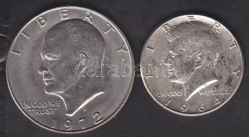 USA 1964. 1/2$ Ag "Kennedy" + 1972. 1$ "Eisenhower" T:1-,2- https://www.darabanth.com/hu/136-Gyorsarveres/136.0/Numizmatika/Kulfoldi-fem-es-ezustpenzek~300094/USA-1964-12USD-Ag-Kennedy-plus-1972-1USD-Eisenhower-T1-2-~II391293