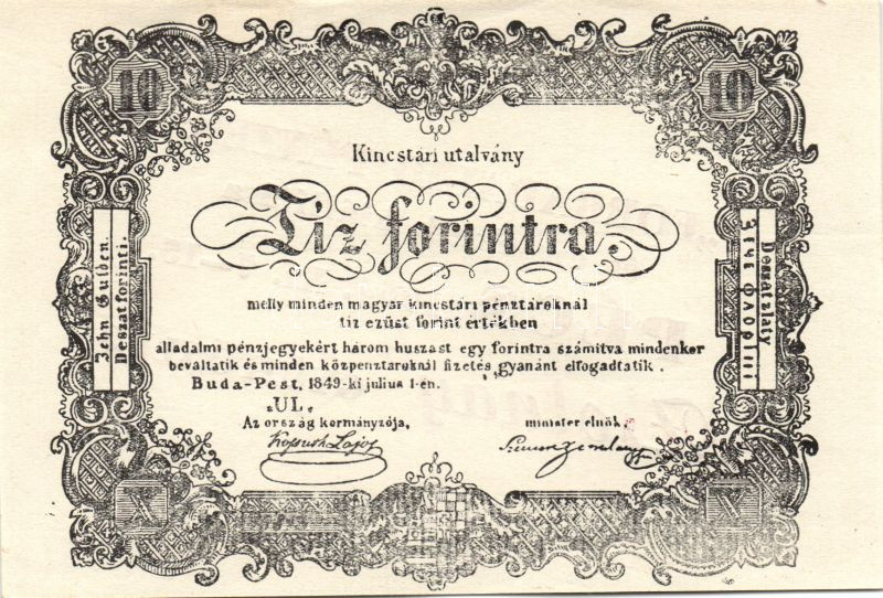 1849. 10Ft "Kincstári utalvány" 1964-es utánnyomata "Forradalmi Pénzek... https://www.darabanth.com/hu/136-Gyorsarveres/136.0/Numizmatika/Magyar-es-magyar-vonatkozasu-bankjegyek~300089/1849-10Ft-Kincstari-utalvany-1964-es-utannyomata-Forradalmi-Penzek-es-emlekeik-kiallita~II393493