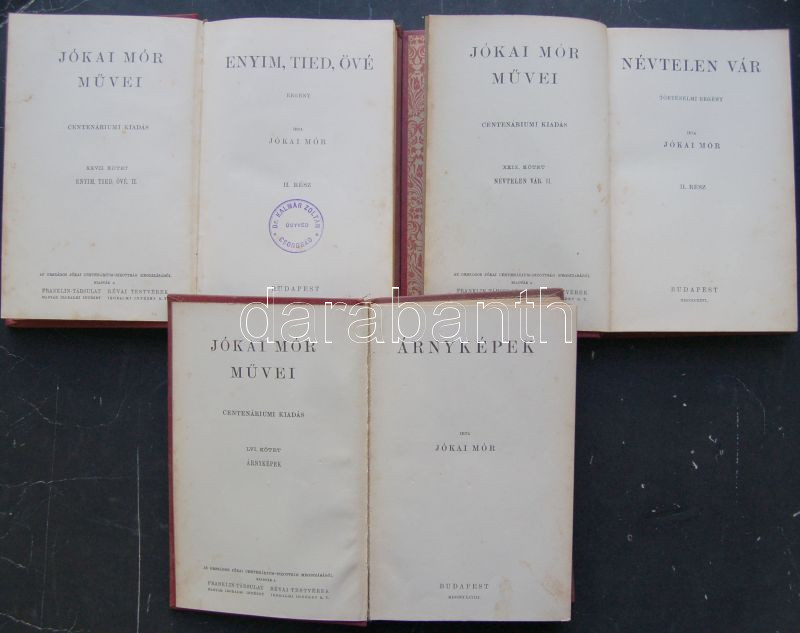 1924 Jókai centenáriumi díszkiadás 3 kötet a sorozatból: 27,29,56. egy... https://www.darabanth.com/hu/137-Gyorsarveres/137.0/Festmeny-mutargy-papirregiseg-egyeb/Konyvek-egyeb-ritkasagok~296/1924-Jokai-centenariumi-diszkiadas-3-kotet-a-sorozatbol-27-29-56-egyseges-jo-allapotban~II395213