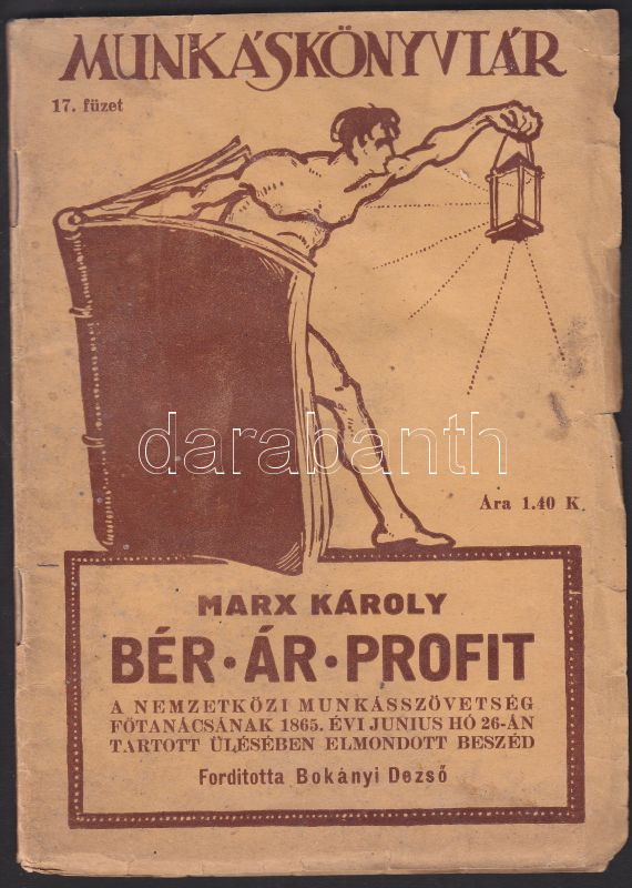 Munkáskönyvtár: Marx Károly: Bér, ár, profit; Népszava könyvkereskedés... https://www.darabanth.com/hu/137-Gyorsarveres/137.0/Festmeny-mutargy-papirregiseg-egyeb/Konyvek-egyeb-ritkasagok~296/Munkaskonyvtar-Marx-Karoly-Ber-ar-profit-Nepszava-konyvkereskedes-1918-papirkotes~II397880