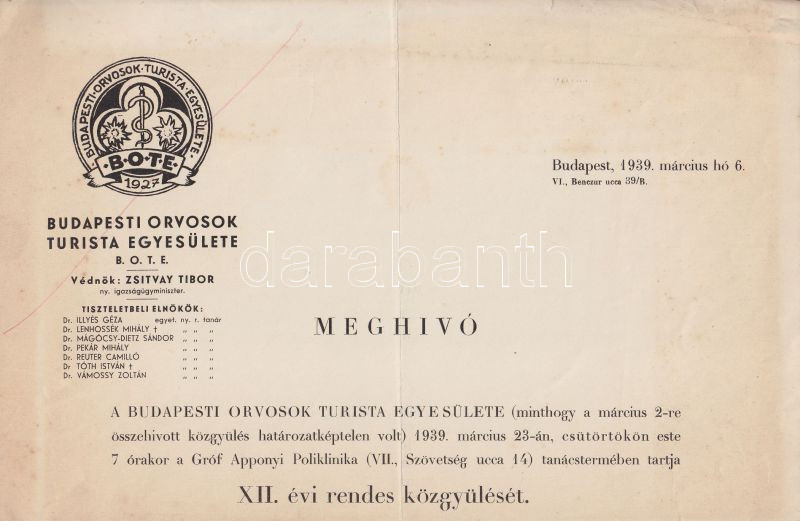1939 Meghívó A BOTE közgyűlésére https://www.darabanth.com/hu/137-Gyorsarveres/137.0/Festmeny-mutargy-papirregiseg-egyeb/Nyomtatvanyok~292/1939-Meghivo-A-BOTE-kozgyulesere~II398601