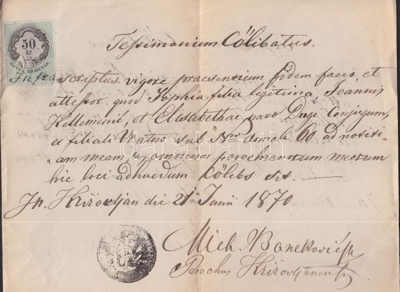 https://www.darabanth.com/hu/137-Gyorsarveres/137.0/Festmeny-mutargy-papirregiseg-egyeb/Okmanyok~280/1870-Colibatusi-level~II398699