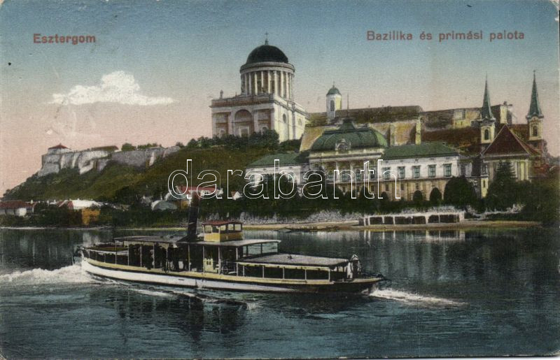 Esztergom Bazilika és Prímási Palota gőzössel https://www.darabanth.com/hu/137-Gyorsarveres/137.0/Kepeslapok/Magyarorszag~500005/Esztergom-Bazilika-es-Primasi-Palota-gozossel~II389741