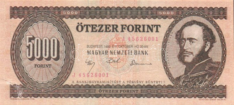1992. 5000Ft "J" korabeli hamisítványa T:I- papírgyűrődés az egyik sar... https://www.darabanth.com/hu/137-Gyorsarveres/137.0/Numizmatika/Magyar-es-magyar-vonatkozasu-bankjegyek~500088/1992-5000Ft-J-korabeli-hamisitvanya-TI-papirgyurodes-az-egyik-saroknal~II398605
