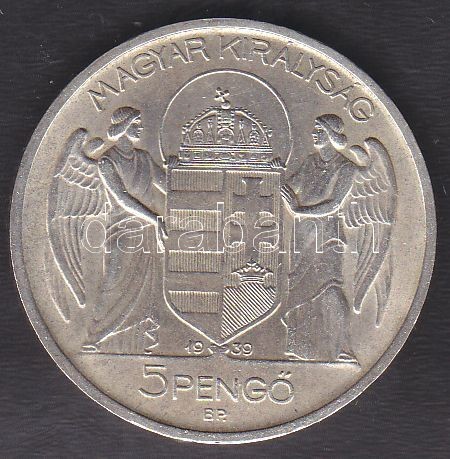Leírás: 1939. 5P Ag "Horthy - balra" T:2