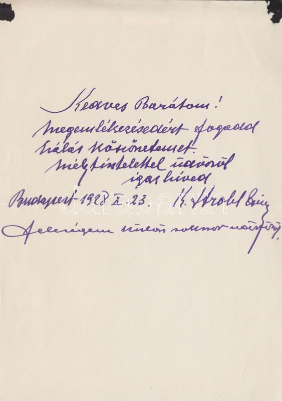 1928. K. Strobl Zsigmond autográf köszönőlevele https://www.darabanth.com/hu/138-Gyorsarveres/138.0/Festmeny-mutargy-papirregiseg-egyeb/Alairas~400020/1928-K-Strobl-Zsigmond-autograf-koszonolevele~II401188
