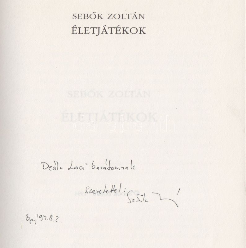 1994. Sebők Zoltán: Életjátékok címmel megjelent könyvének első kiadás... https://www.darabanth.com/hu/138-Gyorsarveres/138.0/Festmeny-mutargy-papirregiseg-egyeb/Alairas~400020/1994-Sebok-Zoltan-Eletjatekok-cimmel-megjelent-konyvenek-elso-kiadasa-a-szerzo-autogra~II402771