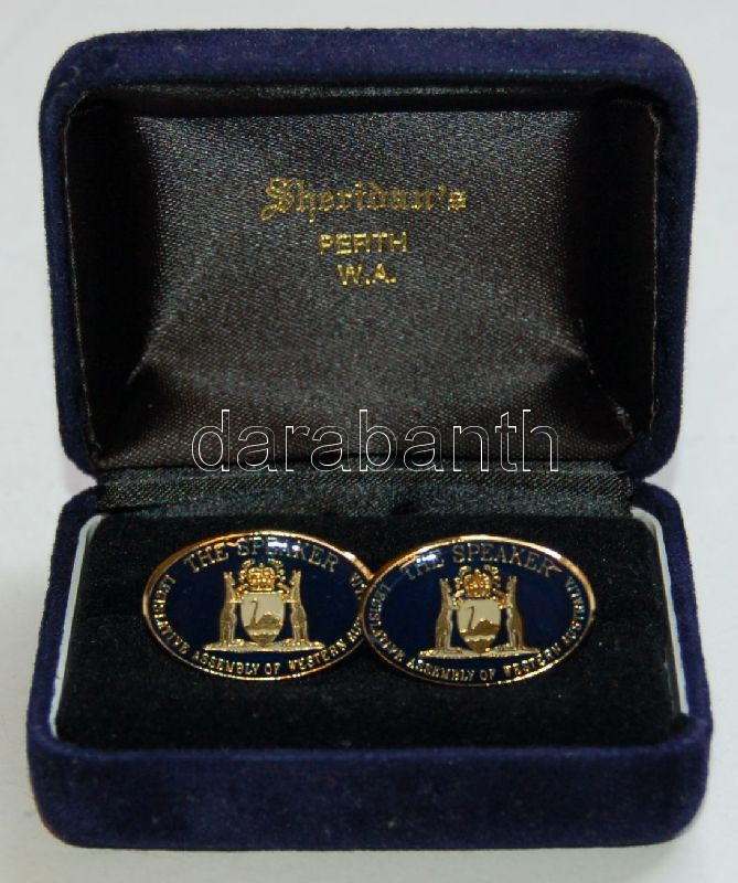 Leírás: 2db mandzsettagomb "Jogalkotási Gyűlés Nyugat-Ausztrália" felirattal, eredeti dísztokban, új állapotban