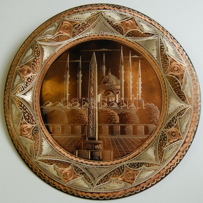 Leírás: Dekoratív réz falitányér d: 32 cm