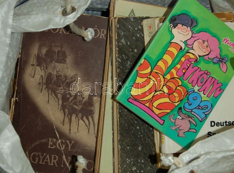 Leírás: Hatalmas bolhapiac tétel 2 fehér szatyorban: régi napszemüvegek, magazinok, nyomtatványok, fényképalbum, könyvek, lemezek, VHS-kazetták, stb.