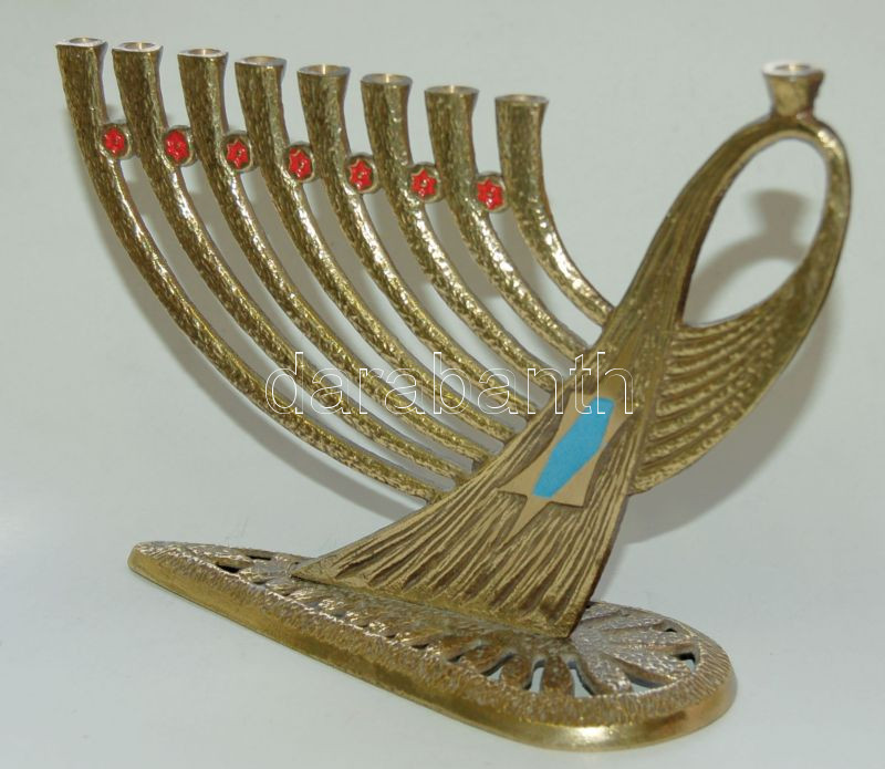 Leírás: Szép réz hanukiah 23x15 cm