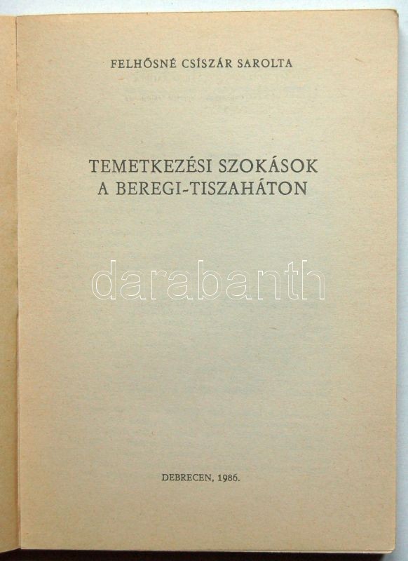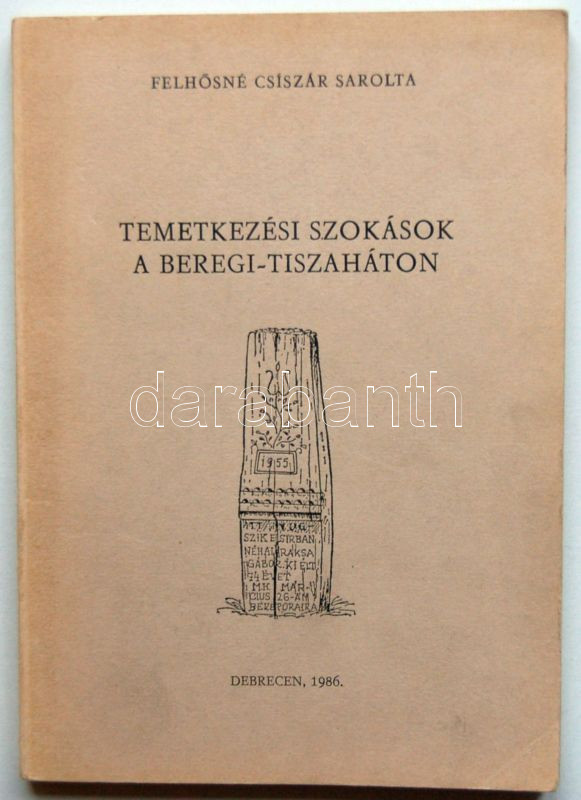 1986. Felhősné Csiszár Sarolta: Temetkezési szokások a Beregi-Tiszaháton a Kossuth Lajos Tudományegyetem Néprajzi Tanszékének kiadványa, Debrecen, jó állapotban