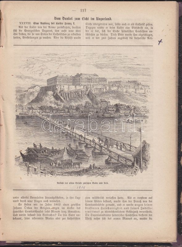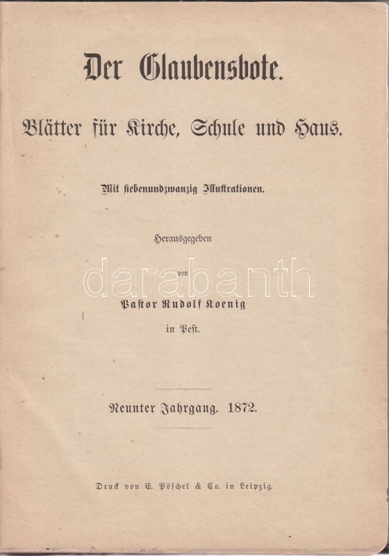 A Pesten kiadott német nyelvű Die Glaubensbote c. újság évfolyama keménykötésben. Számos érdekes képpel: budapesti hajóhíd, Árpád-házi Szt. Erzsébet kriptája, portrék / Full year of the Di Glaubensbote issued in Pest with a lot of interesting pictures