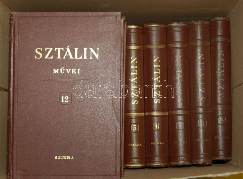 I. V. Sztálin művei 1-13. kötetek. Teljes sorozat. 1951, Szikra aranyo... https://www.darabanth.com/hu/138-Gyorsarveres/138.0/Festmeny-mutargy-papirregiseg-egyeb/Konyvek-egyeb-ritkasagok~400037/I-V-Sztalin-muvei-1-13-kotetek-Teljes-sorozat-1951-Szikra-aranyozott-kiadoi-mubor-kote~II392421