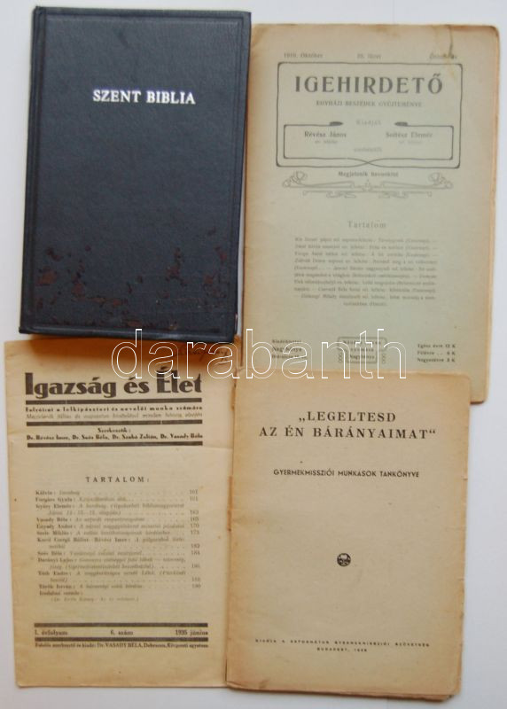 Vallási tétel, benne Bibliával és háború előtti kiadványokkal, mint Ig... https://www.darabanth.com/hu/138-Gyorsarveres/138.0/Festmeny-mutargy-papirregiseg-egyeb/Konyvek-egyeb-ritkasagok~400037/Vallasi-tetel-benne-Bibliaval-es-haboru-elotti-kiadvanyokkal-mint-Igazsag-es-Elet-Igeh~II401882