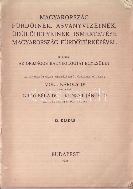 1941 Magyarország fürdőinek, ásványvizeinek, üdülőhelyeinek ismertetés... https://www.darabanth.com/hu/138-Gyorsarveres/138.0/Festmeny-mutargy-papirregiseg-egyeb/Konyvek-utazas-varosok~400035/1941-Magyarorszag-furdoinek-asvanyvizeinek-udulohelyeinek-ismertetese-Orsz-Balneologia~II401383